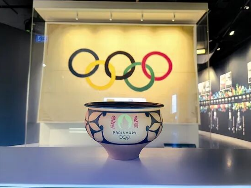 2024年7月,王新軍團(tuán)隊制作的“花開奧運(yùn)”經(jīng)典彩陶盆亮相巴黎奧運(yùn)會文化交流活動,并走進(jìn)希臘、瑞士、比利時等國家。傳統(tǒng)仰韶元素與現(xiàn)代審美碰撞,古樸的弧線勾勒出奧運(yùn)五環(huán)的靈動,生動表達(dá)世界和平的愿景,吸引多國觀眾駐足,以“無國界藝術(shù)”引發(fā)國際社會對中華優(yōu)秀傳統(tǒng)文化的共鳴。