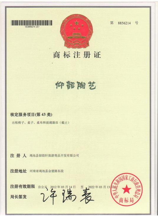 商標(biāo)注冊(cè)證--仰韶陶藝